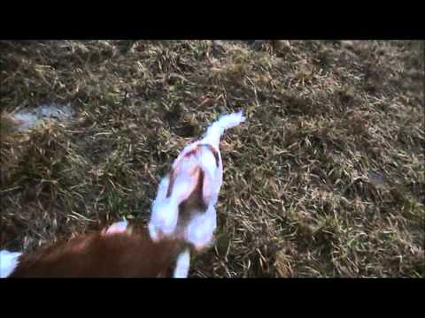 Hilary ja Nekku peltoleikeissä, välillä videolla vilahtaa myös Nita, joka yritti parhaansa mukaan pysyä pois vauhtikaksikon tieltä.